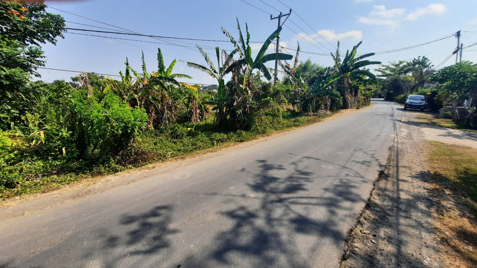 The land is flat, dry and ready to develop; approximately two thirds of the plot is grassed, with a number of trees alongside the road, whilst the other third is abundant with pandan trees.