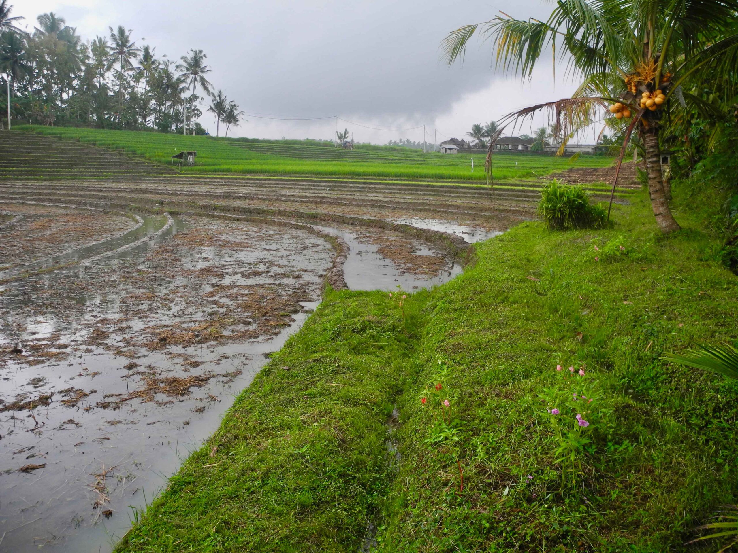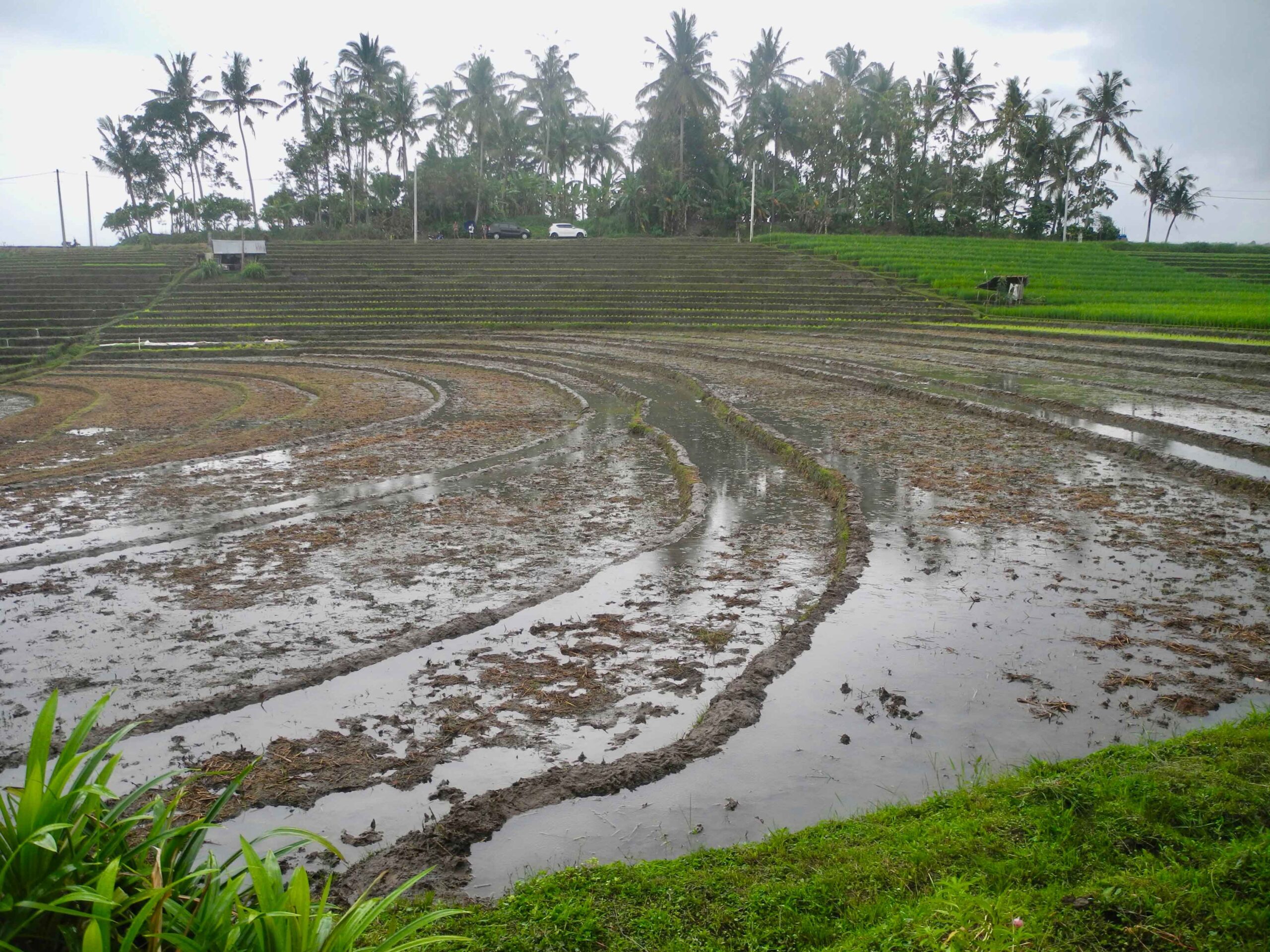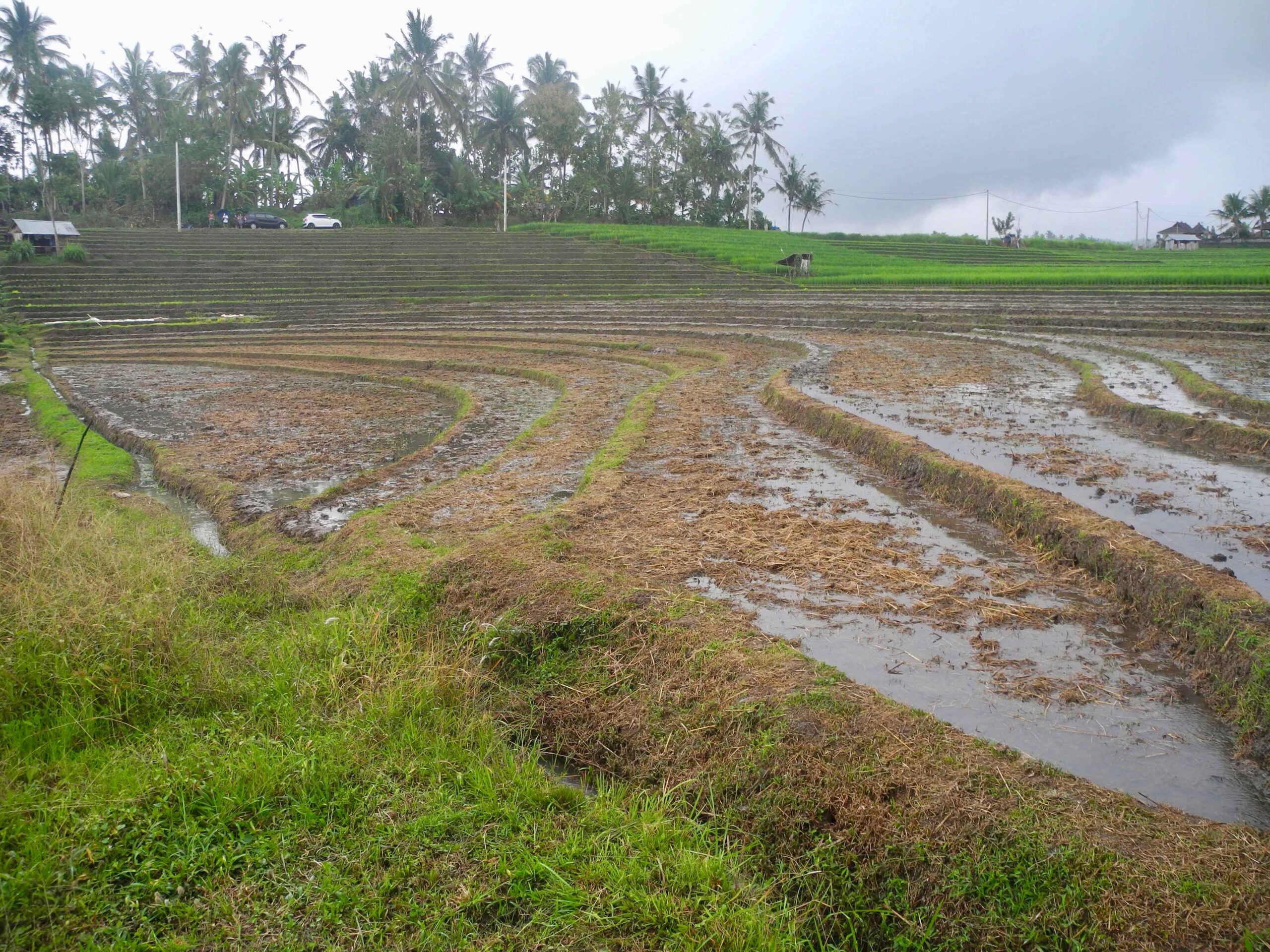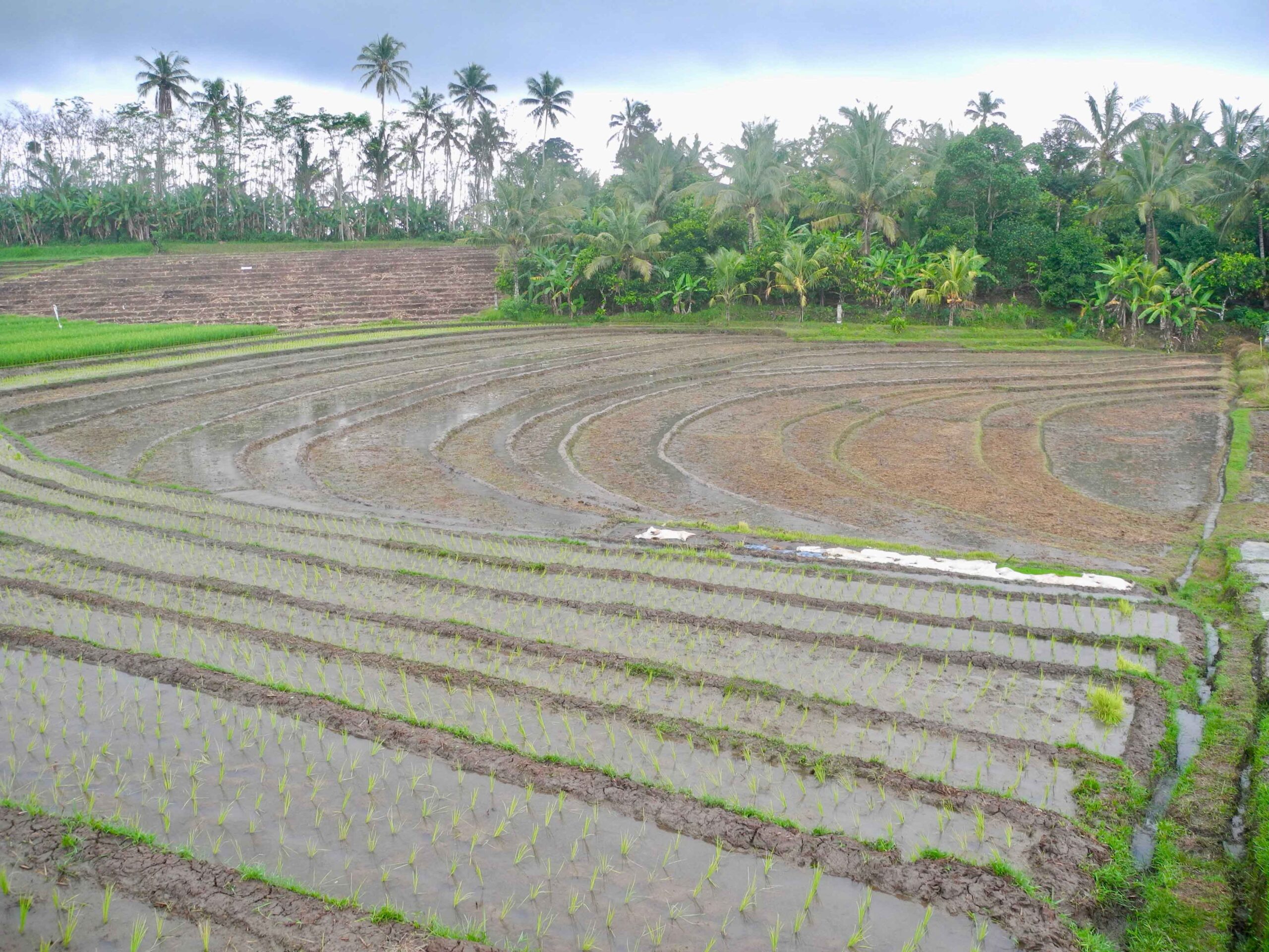 The land has excellent road access which runs the length of one side of the rectangular plot. From the road side to the west, the land slopes down to a large flat plateau which is square in shape. On the opposite side to the road, to the east of the plot there is the view of lush tropical vegetation. Then to the north and particularly the south there are stunning views over the rolling rice fields.