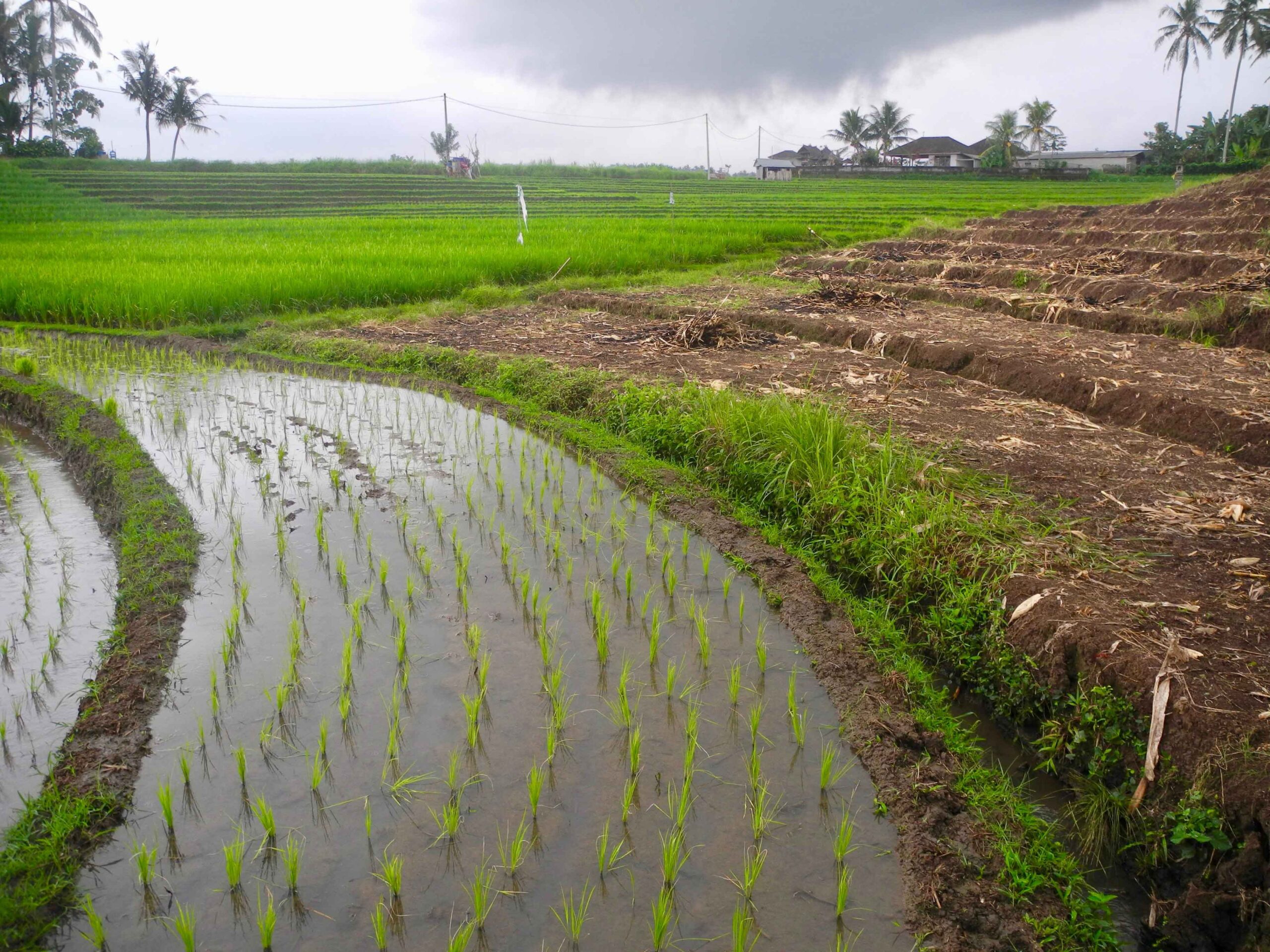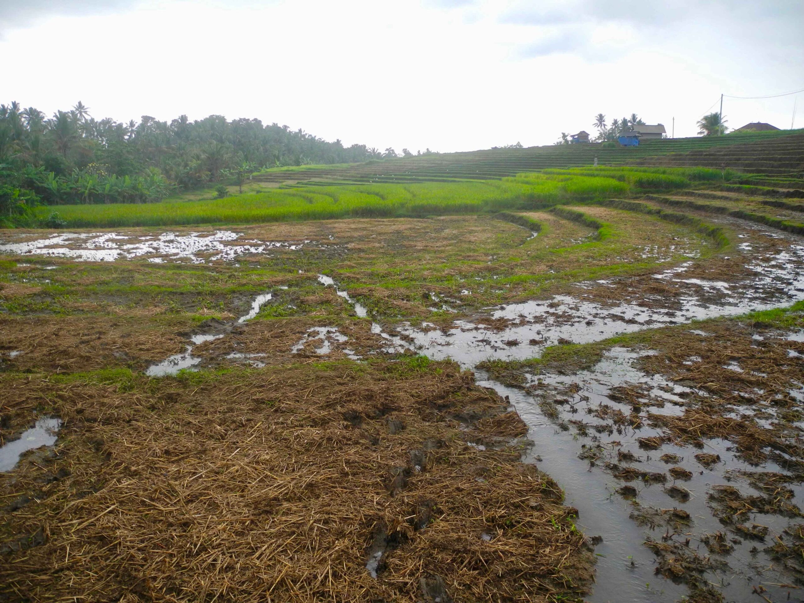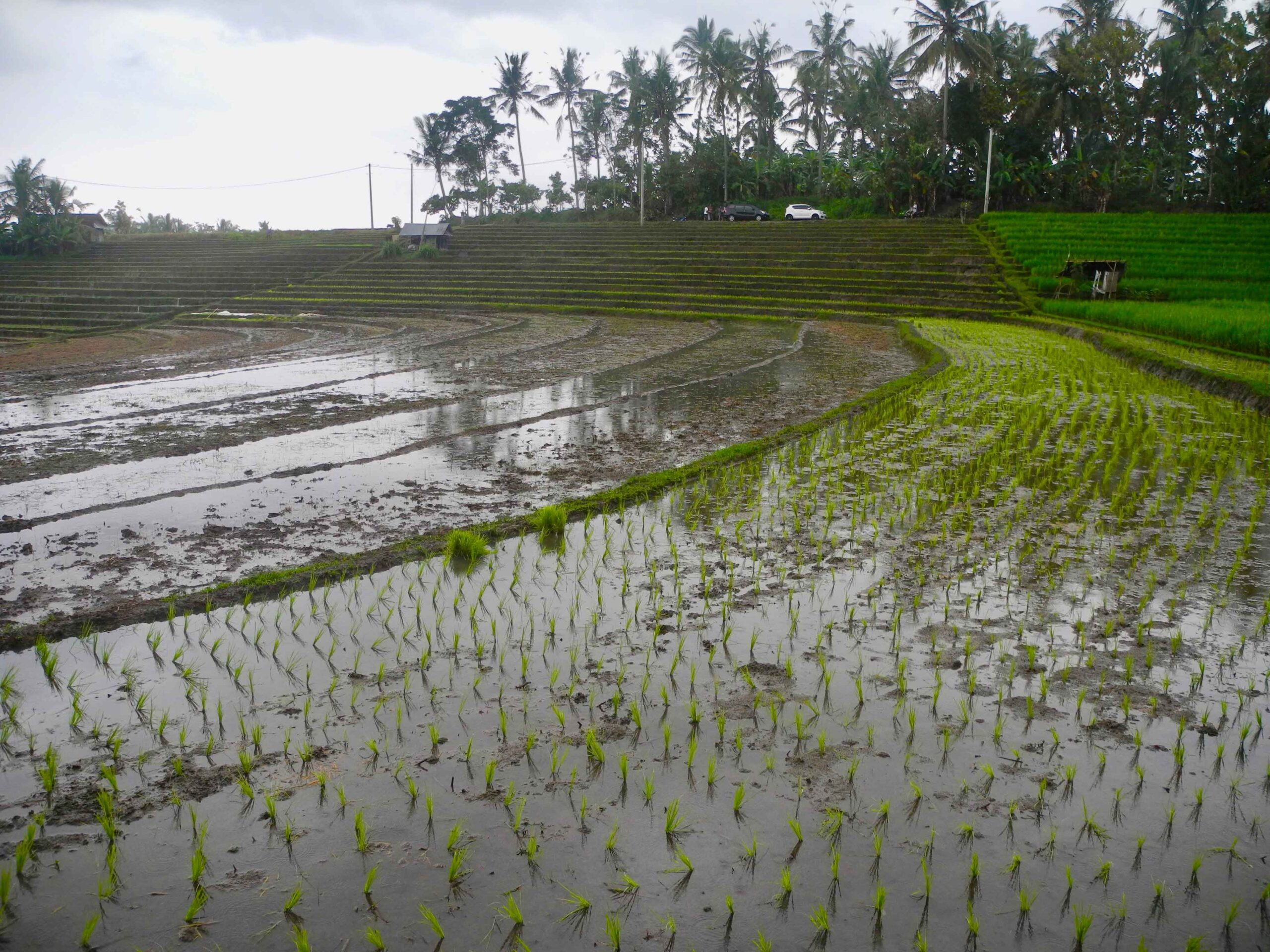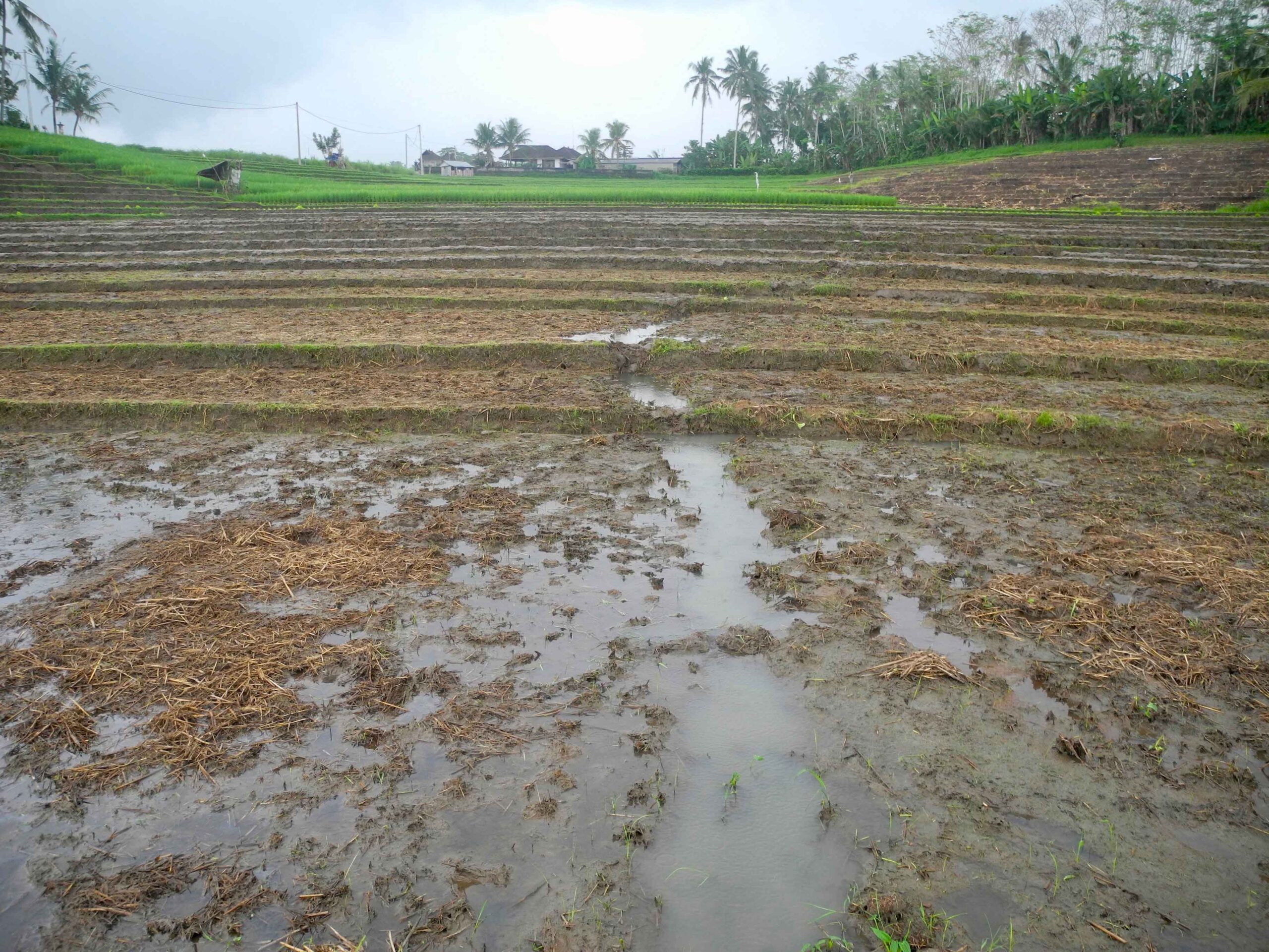 The land has excellent road access which runs the length of one side of the rectangular plot. From the road side to the west, the land slopes down to a large flat plateau which is square in shape. On the opposite side to the road, to the east of the plot there is the view of lush tropical vegetation. Then to the north and particularly the south there are stunning views over the rolling rice fields.
