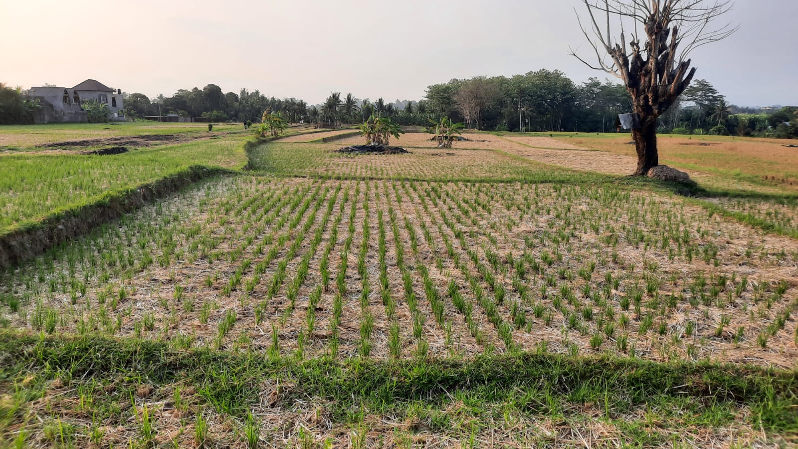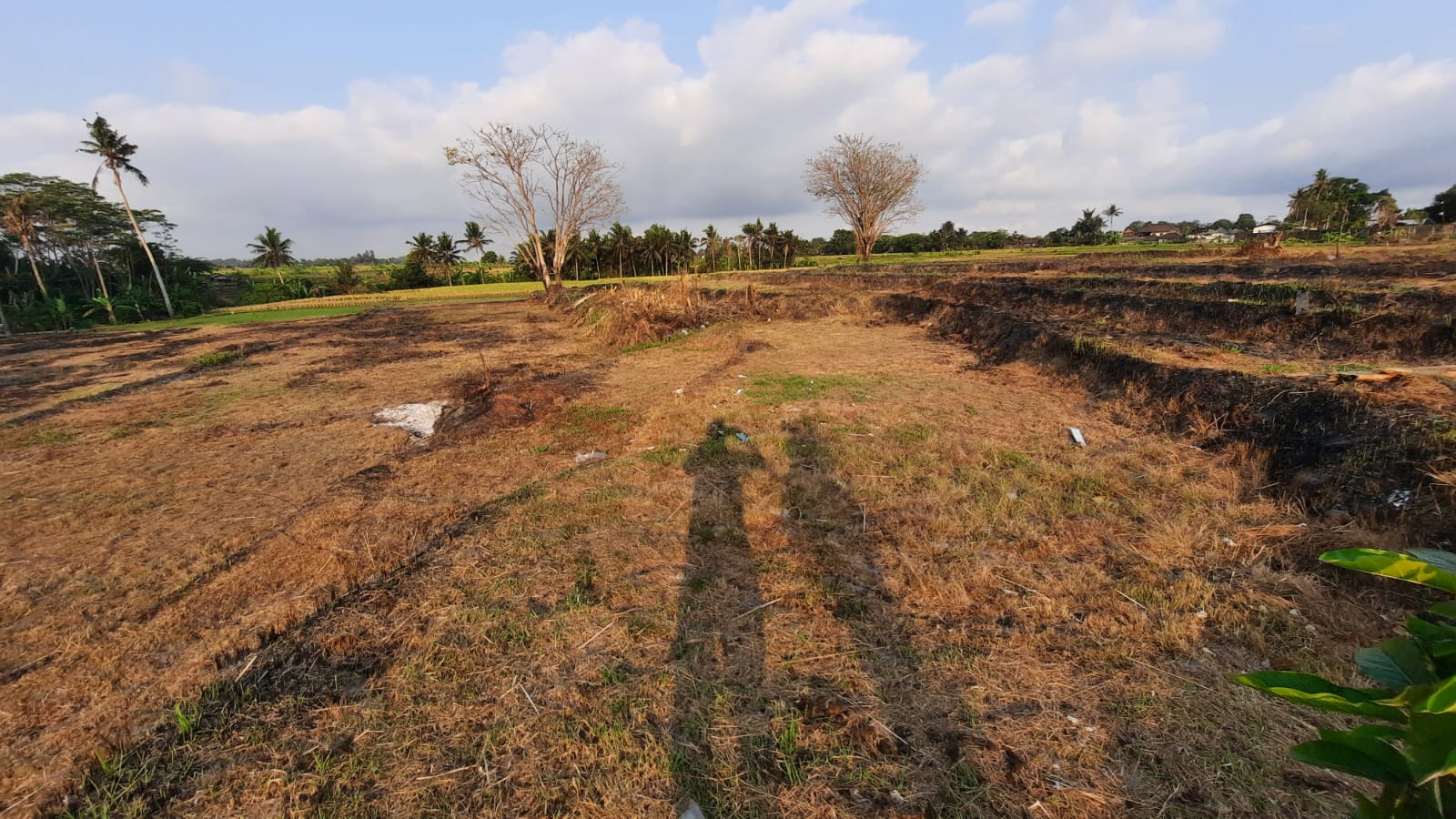 The land is situated in the yellow zone and is L shaped with a short side bordering a well tarmacked road. There are a few villas nearby, however mostly the views across the surrounding rice fields and jungle areas are uninterrupted. A property borders the top border of the plot opposite the access road border. The land is flat and ready to develop. There are two land certificates making the total size 6,000 square metres (60 are).