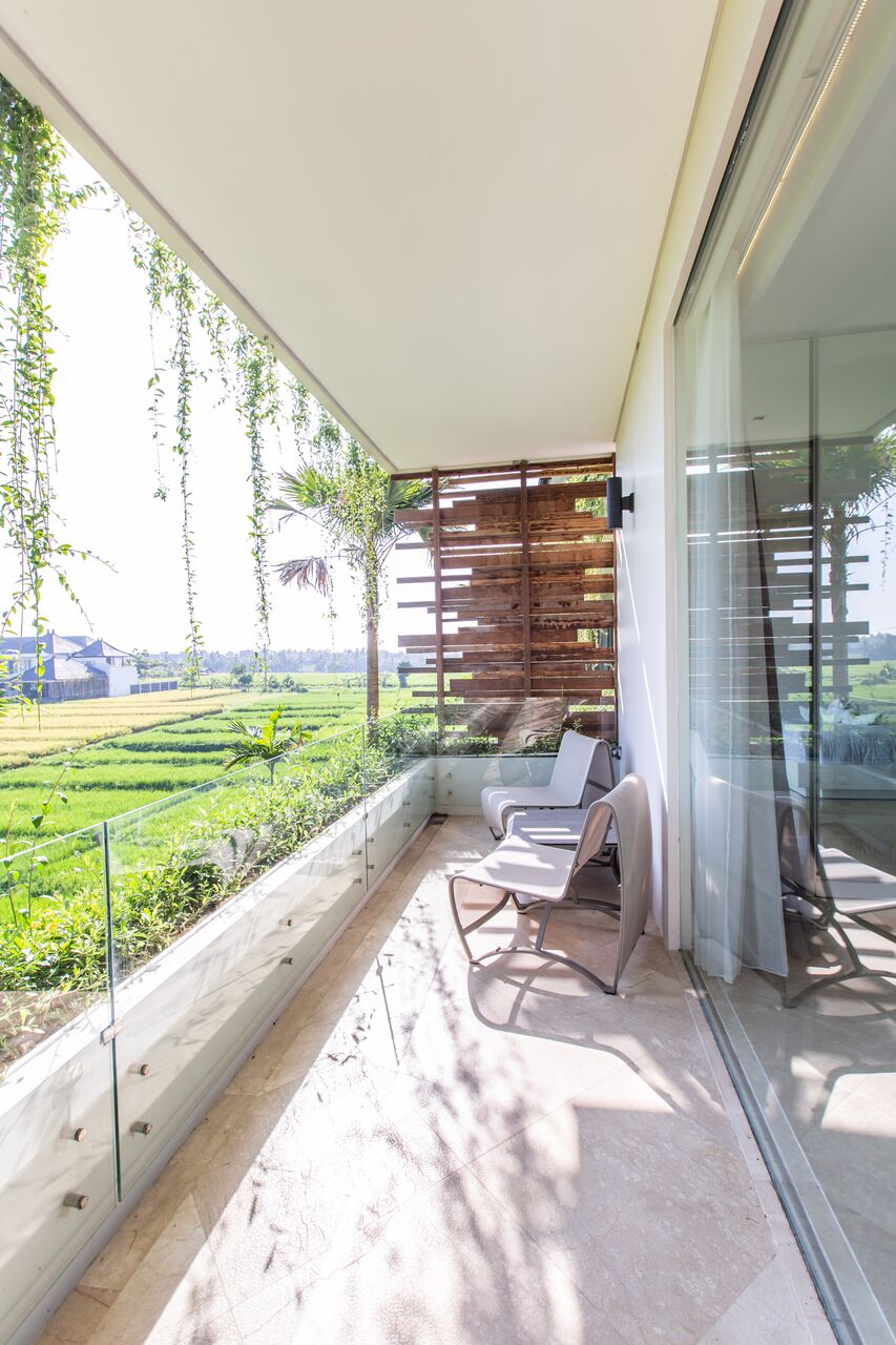This apartment is located on the second floor and enjoys a quintessential view over the rice fields. The two bedroom suite sleeps 3 people in a master room and single bedroom which is perfect for a child. The suite is beautifully furnished with a living area, stylish en suite, kitchen and balcony, where tenants can enjoy the fabulous sunrises.