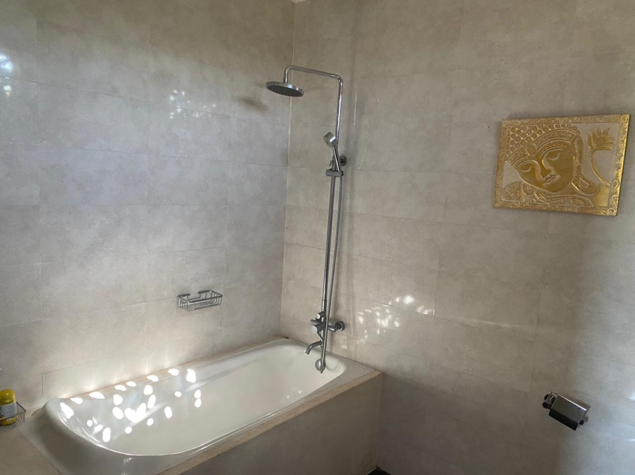 The villa has 3 en suite bedrooms, split over 2 floors. The second floor has a balcony and jungle view. The ground floor has an enclosed living area and kitchen, overlooking the swimming pool and garden area. Other facilities include a garage, flat screen TV's, barbecue and washing machine. The villa is fully furnished.