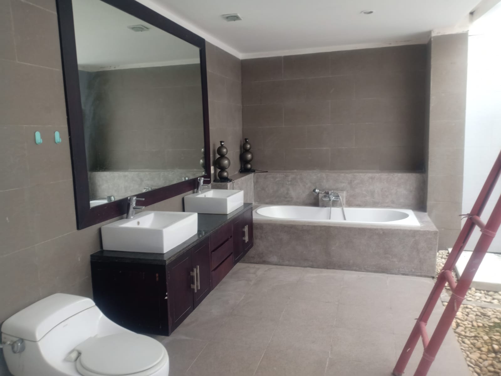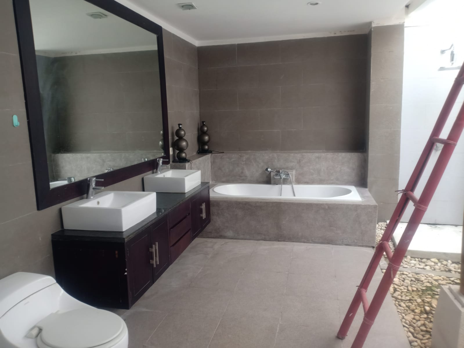 Built in 2012, this 3 bedroom villa is very well located in the increasingly popular village of Pererenan on Bali's west coast. The property is built over 2 levels on a 650 square metre (6.5 are) land plot, with the building measuring 470 square metres. Features include 2 swimming pools (one for adults and one for children or plunging), a large balcony where guests can enjoy the rice filed and river view from the comfort of a sofa under the large bale (gazebo). 3 bedrooms all with en suite bathrooms. A living, dining and kitchen area, plus staff room, garage and car parking area. There is a 4 metre access road and the villa is complete with IMB (building permit) and is fully furnished.
